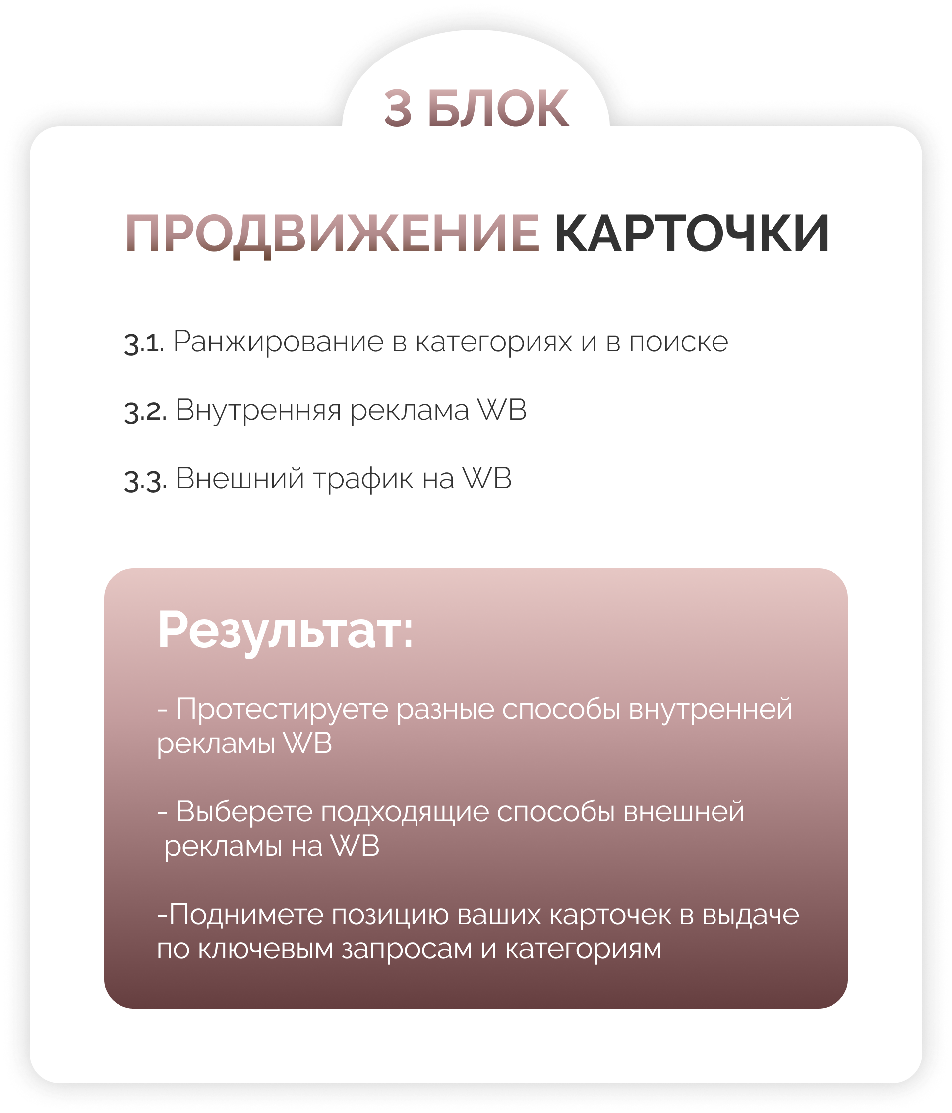 WB – высококонкурентная и быстро меняющаяся среда, поэтому точных гарантий «от нуля до 100 тыс. прибыли за месяц» я давать не могу. Результат зависит от вас, вашей продукции, умения подстраиваться под изменения и конкурентов. На интенсиве я делюсь мои практическим опытом – как мне удается работать на площадке 2,5 года и получать там стабильный и предсказуемый объем продаж.